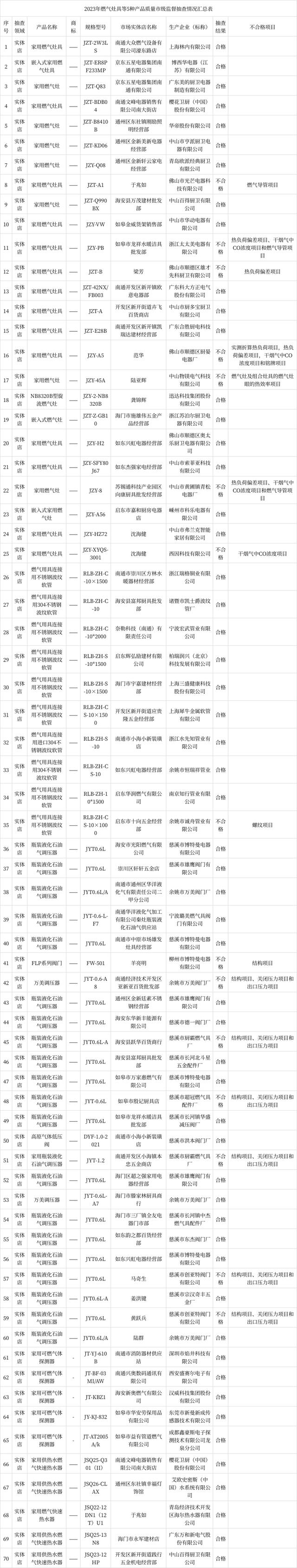 - 南通市市監局通報2023年燃氣灶具等5種產品質量市級監督抽查情況
