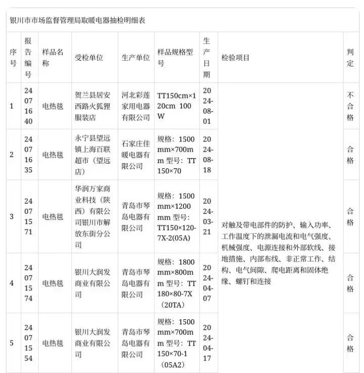 - 寧夏銀川市市場監(jiān)管局公布2025年取暖產(chǎn)品質(zhì)量抽檢結(jié)果