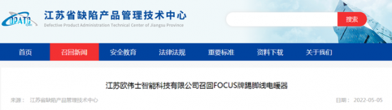 - 江蘇歐偉士智能科技有限公司召回FOCUS牌踢腳線電暖器