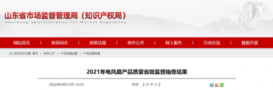 - 山東省市場監(jiān)督管理局抽查電風(fēng)扇產(chǎn)品50批次 不合格10批次