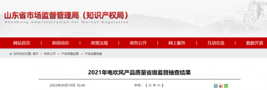 - 2022年4月19日,山東省市場監(jiān)督管理局網(wǎng)站公布2021年電風(fēng)扇產(chǎn)品質(zhì)量省級監(jiān)督抽查結(jié)果。信息顯示,2021年第3批省級監(jiān)督抽查共抽查電風(fēng)扇產(chǎn)品50批次,其中,10批次產(chǎn)品不符合相關(guān)標(biāo)準(zhǔn)的要求,不合
