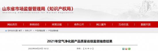 - 2022年4月29日,山東省市場監(jiān)督管理局網(wǎng)站公布2021年空氣凈化器產(chǎn)品質(zhì)量省級監(jiān)督抽查結(jié)果。本次抽查發(fā)現(xiàn),標(biāo)稱北京亞都環(huán)保科技有限公司生產(chǎn)的2批次空氣凈化器不符合相關(guān)標(biāo)準(zhǔn)的要求。