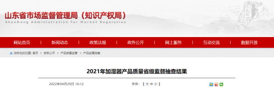 - 2022年4月29日,山東省市場監(jiān)督管理局網(wǎng)站公布2021年加濕器產(chǎn)品質(zhì)量省級監(jiān)督抽查結(jié)果。本次抽查發(fā)現(xiàn),標(biāo)稱上海華生電器有限公司生產(chǎn)的1批次加濕器產(chǎn)品不符合相關(guān)標(biāo)準(zhǔn)的要求,不合格項(xiàng)目為電