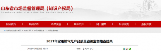 - 山東省市場監(jiān)督管理局抽查家用燃?xì)庠町a(chǎn)品16批次 全部合格