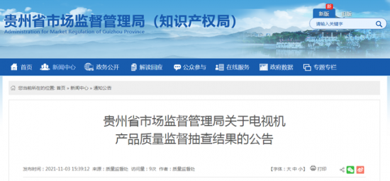- 貴州省市場監督管理局公布1批次電視機產品質量監督抽查結果
