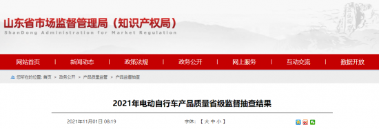 - 山東省市場監督管理局:4批次電動自行車產品不符合相關標準的要求