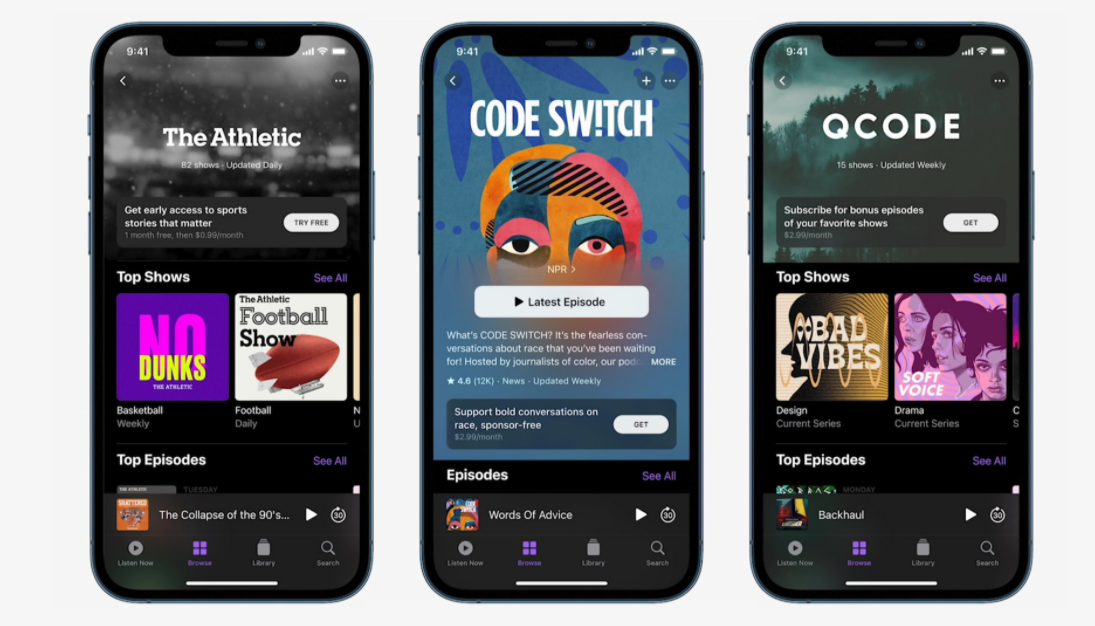 蘋果在春季新品發布會上宣布啟動Apple Podcasts應用的訂閱服務,將于下個月在170個國家和地區上線。訂閱用戶能夠享受搶先體驗、無廣告收聽等功能。