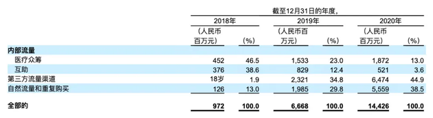 2018年,通過眾籌和互助引流實現(xiàn)的保費占比高達85%。 隨著業(yè)務(wù)擴張,產(chǎn)品外部流量占比不斷攀升,另外兩款產(chǎn)品的流量貢獻度大幅度下降。到了2020年,眾籌和互助引流實現(xiàn)的保費占比僅為17%。