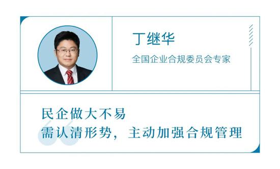 全國企業合規委員會專家丁繼華則表達了他對民企的同情,他認為民企做大不易,應認清形勢,在內部建立合規體系。