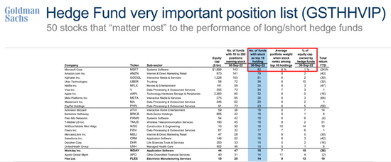 重點是,微軟是大多數機構投資者(對沖基金)最重要的公司。正如同一份高盛報告所顯示的,只要這個頭寸是在10大持股中,它平均達到總投資組合的8%。
