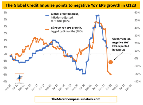 在過去3個月中,微軟的EPS已經被修改了36次。所有的修改都是向下的。我預計分析師會在未來幾個季度基于更低的EPS數字或倍數不斷修正他們的價格目標。這不僅僅是微軟的問題,也是整個股票市場的問題。在任何情況下,宏觀經濟模型[由Alf提供,來自The Macro Compass,2022年11月24日]表明這一過程的不可避免性。