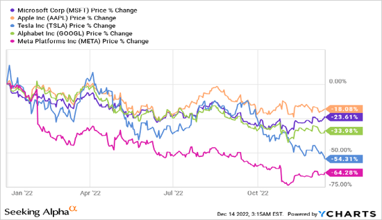 我認為微軟(NASDAQ:MSFT)是市場中最穩定的公司之一,但是,即使在年初至今下跌23%之后,微軟的股價依然昂貴。