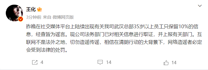 小米武漢總部35歲以上員工裁員90%?公司回應(yīng):系謠言