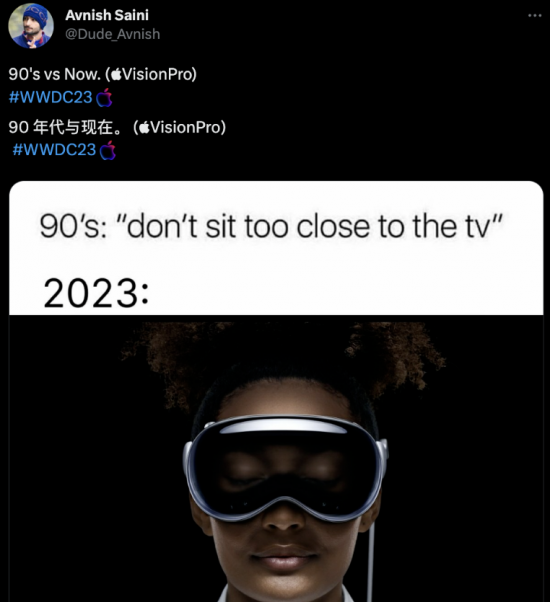 90年代大家都說離電視太近不好,2023年,蘋果倒是直接把電視懟臉上了。