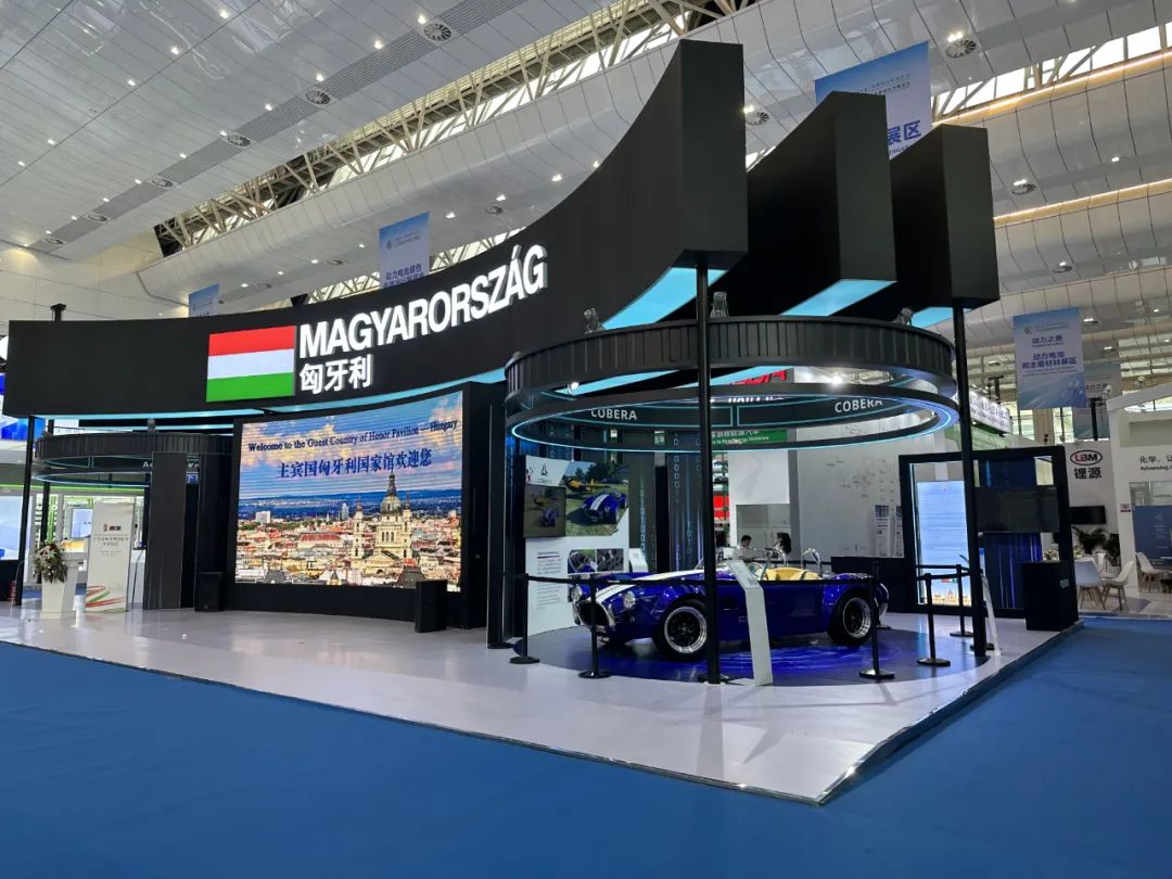 此外,本次大會大會特設主賓國,由全球領先的動力電池生產國匈牙利擔任,并舉辦主賓國專場活動。來自匈牙利的全電動復古敞篷跑車,吸引了眾人的眼球,藍色外殼下,可謂動力十足,百公里加速僅需2.6秒。