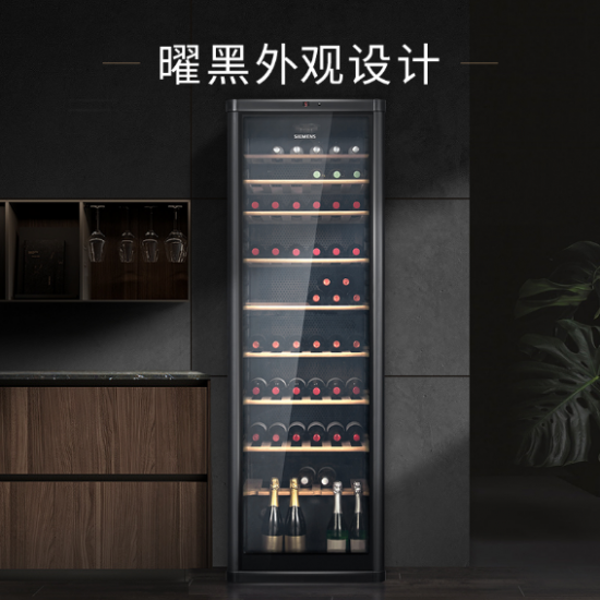 這個時候就需要西門子窖藏式酒柜出手來解決這個煩惱了。其實。酒柜不僅是存放酒的家電,它還能在家中營造出一種高檔雅致的氛圍。西門子獨立式窖藏酒柜采用曜黑色外觀配色,沉穩大氣。雙層在線鍍膜工藝的防紫外線玻璃,展示藏酒的同時,更能有效減少紫外線對酒的傷害。內部進口的橡木酒架,高效減震。