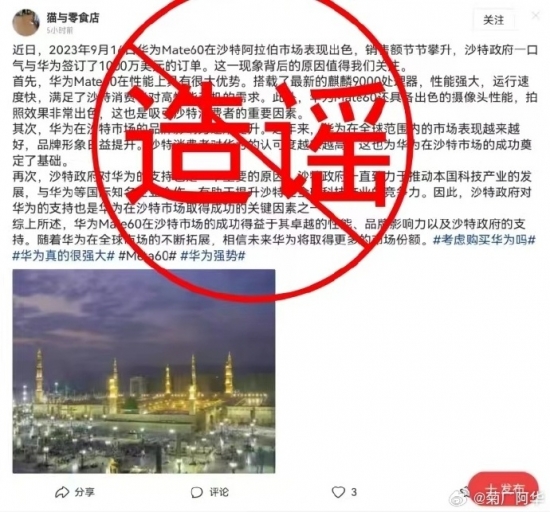 【劃重點】: 近日,有社交平臺出現“俄羅斯、委內瑞拉、沙特等國向華為訂購全新5G手機”的消息,并被多平臺和多賬號轉載。 9月18日深夜,華為通過微博官方藍V賬號“菊廠阿華”辟