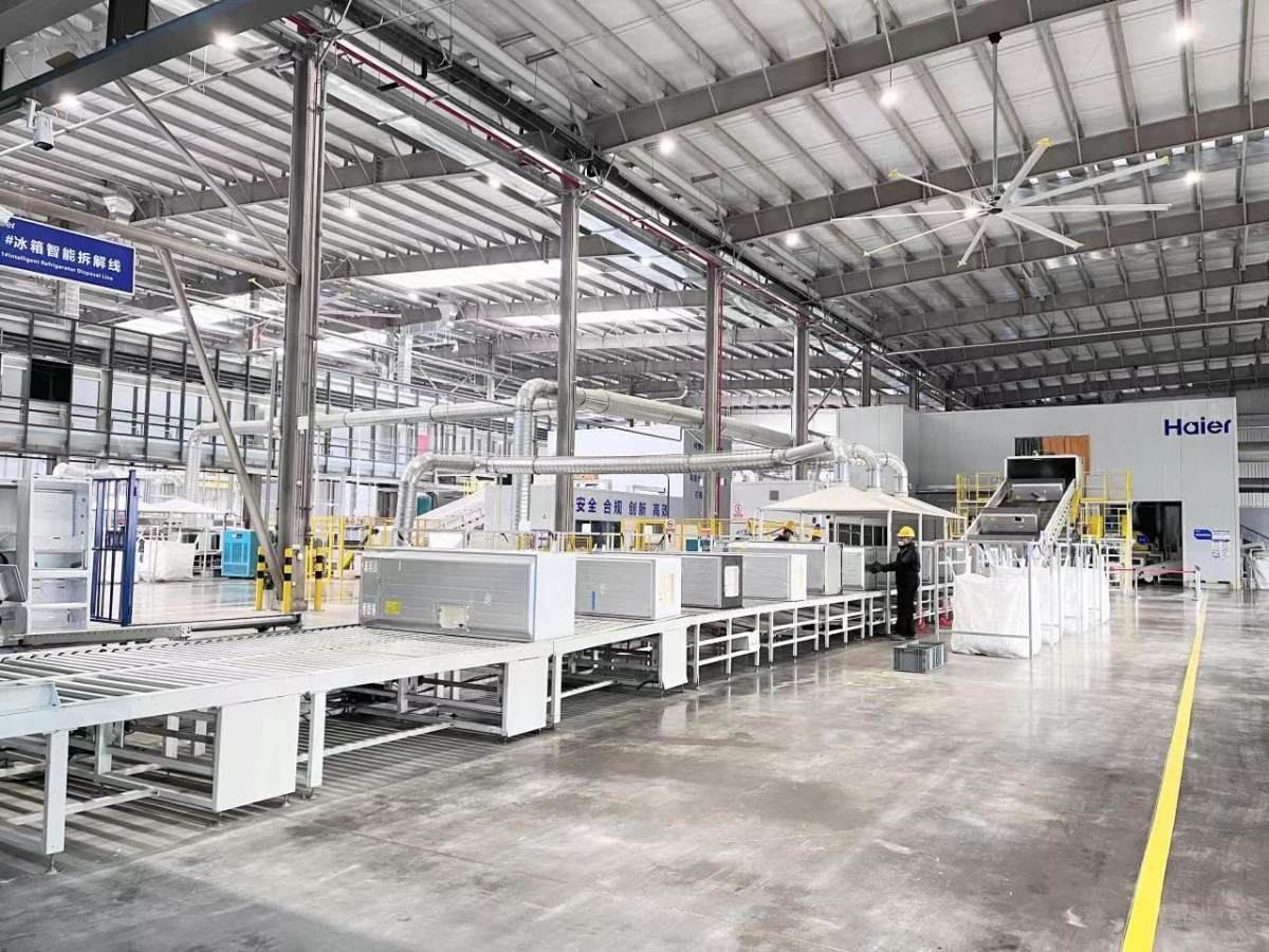 在產業(yè)綠色化上,海爾智家在青島萊西打造了行業(yè)首座融合“回收-拆解-再生-再制造”為一體的再循環(huán)互聯(lián)工廠。從全國各地回收的家電,在這里通過全流程可視化、規(guī)范化的精細拆解、破碎清洗、塑料造粒,最終生成高品質的循環(huán)新材料。而這些再生材料純度高達99%,純度行業(yè)最高,堪比原生材料,可用于家電、汽車、日化,甚至食品級塑料等領域。目前,該工廠每年可實現(xiàn)廢舊家電拆解200萬臺,循環(huán)材料再生3萬噸。