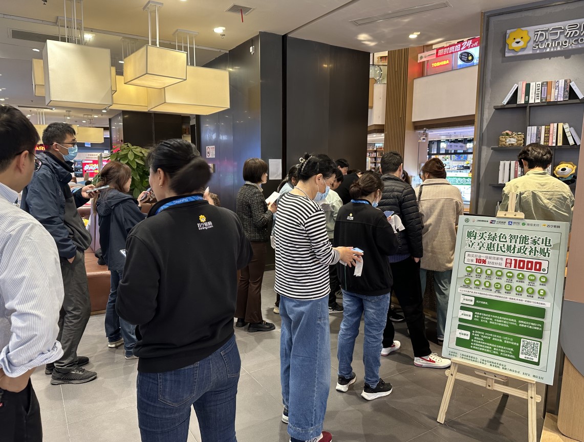 綠色低碳理念助推節(jié)能家電消費走俏。數(shù)據(jù)顯示,綠色智能家電換新銷售額同比增長107%,一級能效成為換新用戶重要參考。3月30日,上海市促進綠色智能家電消費補貼政策正式實施,當(dāng)天蘇寧易購門店換新訂單同比增長120%,上海五角場店進店客流接近10萬人次,買家環(huán)比增長300%。