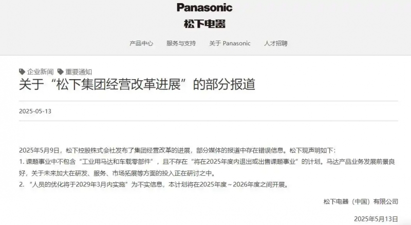 松下電器:“人員的優化將于 2029 年 3 月內實施”為不實信息