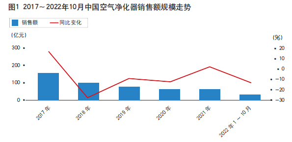 - 中國空氣凈化器市場自2017年達到巔峰后,近5年都處于規模下滑的發展態勢中。奧維云網(AVC)全渠道推總數據顯示,中國空氣凈化器市場零售額從2017年的162億元一路萎縮,到2021年已不足66億元。