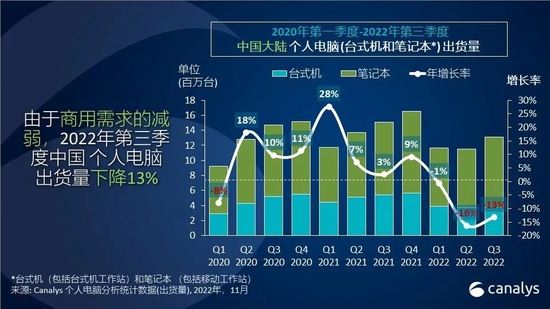 - Canalys:中國個(gè)人電腦2022年第三季度出貨量下降 13%