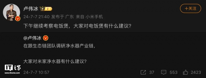 - 盧偉冰考察小米米家電飯煲生態鏈,網友提議:應在內膽、按鍵等用料上更扎實