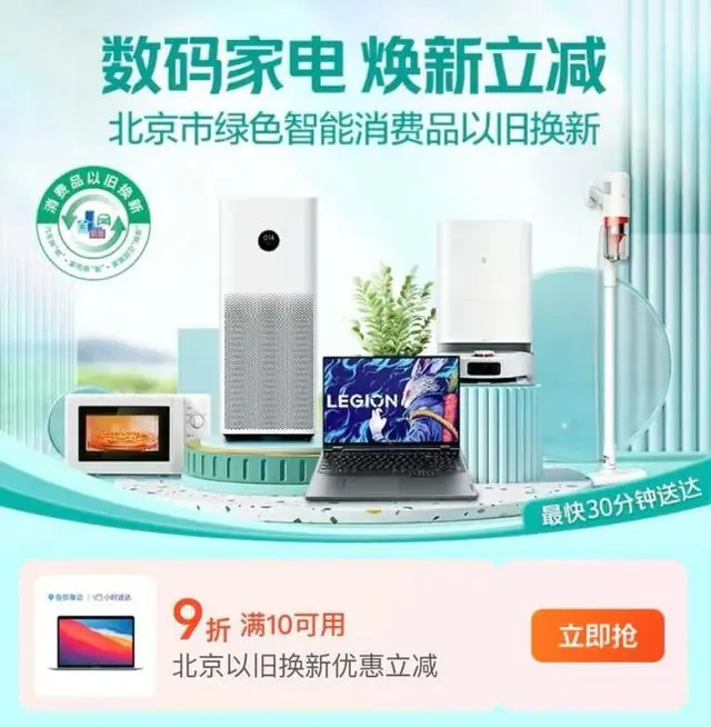 - 美團外賣上線北京“以舊換新”活動,數碼家電即時送達、最高千元補貼