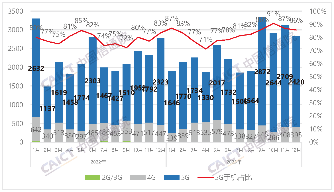 - 低迷已久的中國手機市場在小米和華為的帶動下,終于迎來了復蘇時刻。 1月22日,中國信通院發布了2023年12月以及全年國內手機市場運行分析報告。據相關數據顯示,2023年12月,國內市場手機出