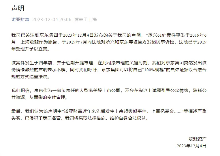 - 京東斥責諾亞財富惡意起訴:希望正視自身問題 拿出整改措施