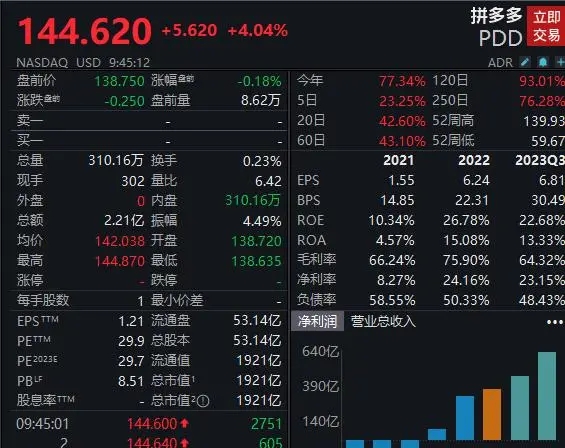 - 北京時(shí)間11月29日晚間,美股拼多多一度漲超4%,市值到達(dá)1921億美元,一度超越阿里巴巴,成為美股市值最大中概股。截至發(fā)稿,拼多多漲幅收窄,最新市值回落至1875億美元。 昨日,拼多多公告,第三季度