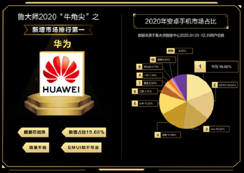 根據(jù)知名測(cè)評(píng)平臺(tái)魯大師公布2020年安卓手機(jī)新增市場(chǎng)占比圖顯示,三星在過去一年中,新增市場(chǎng)占比達(dá)到4.75%,擊敗魅族、一加等國(guó)產(chǎn)小眾品牌,位列中國(guó)第六。