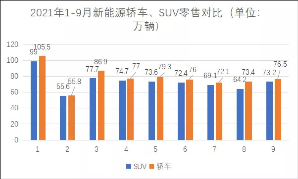 根據乘聯會數據顯示,今年1-9月新能源汽車零售中,轎車零售數量均高于SUV,當然這里的背景還是兩種車型處于供需并不平衡的狀態,這是否暗示轎車市場還有更大的開發空間呢?