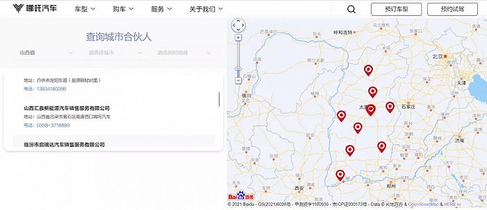 以山西為例,山西共十一個城市,哪吒汽車共在該省擁有線下門店10家,除了省會城市太原有一家直營店,其余均為經銷商門店,且較為平均的分布在各個地級市中。這也與大部分車企布局不同,省會城市并沒有聚集了太多資源,得以讓三四線城市分得更多資源。