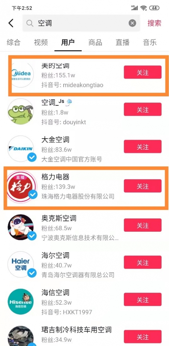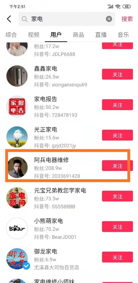 第三是家電關聯帳號的粉絲數。抖音搜索家電相關帳號,第一名是阿兵家電維修,206萬粉,其他幾個主流家電品牌的官號,粉絲過百萬的只有兩家。而抖音最新數據前100名紅人的門檻是2300萬粉絲,差距之大可想而知。沒有粉絲基礎,直播想火便先天不足。