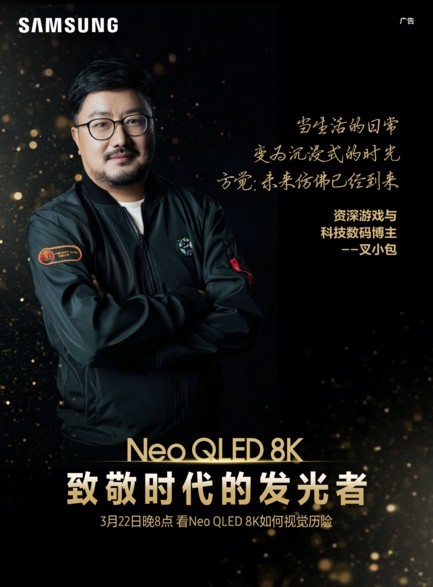 “致敬時代的發光者”,三星借著新品發布的契機致敬每一位努力奮斗的你:用希望,去激勵、去鼓舞、去照耀自己,讓每一個人都能成為這個時代最閃亮的那顆星。"真撼于新 新生不息”, 3月22日晚8點,三星Neo QLED 8K量子點矩陣技術Pro將和更多的發光者們,一起見證這震撼人心的時刻,共同點亮影像新時代。
