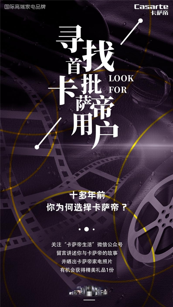 【劃重點】:4月15日,卡薩帝發起尋找首批用戶活動,續寫和完善卡薩帝與用戶間的故事。用戶通過關注“卡薩帝生活”微信公眾號,留言講述與卡薩帝的故事,并曬出卡薩帝家電照片即可參加。