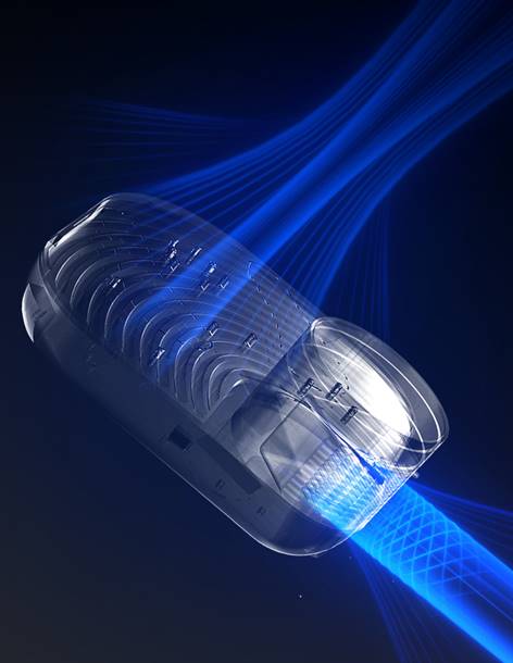 一般的吹風裝置,如風扇、空調只能朝一個方向吹,難以做到“環繞全身”的功效,而天駿負離子干身機卻能以負離子為核心,加之創新的導流結構,大幅度降低出口風所受阻力,23000rpm的轉速配以弧形導流設計,保證了足夠大的風量,讓空氣迅速環繞全身,瞬間感到干爽怡人。