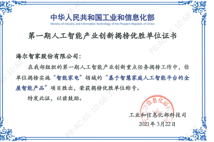 在會(huì)上,海爾智家憑“基于智慧家庭人工智能平臺(tái)的全屋智能產(chǎn)品”項(xiàng)目勝出,榮獲“人工智能產(chǎn)業(yè)創(chuàng)新揭榜優(yōu)勝單位”,成為我國(guó)智能家居產(chǎn)業(yè)創(chuàng)新發(fā)展標(biāo)桿。