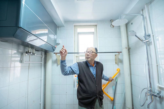 除了智慧廚房之外,三翼鳥智慧浴室也表現不俗。6月初,奧運冠軍張繼科為青島空巢老人王爺爺改造了三翼鳥浴室。根據老人的特殊使用需求,三翼鳥重新設計了水電線路,加裝了吊頂、浴霸,同時還加裝了電熱毛巾架、安全扶手等,給老人創建一個更安全、更健康的洗浴場景。此外,三翼鳥還為王爺爺設計一個融合智慧語音操作、家電互聯互通、寬敞儲物空間、適老安全裝置等元素的適合獨居老人的智慧浴室。