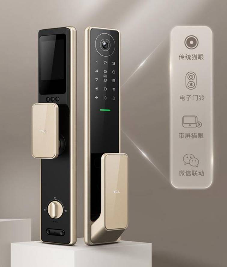 TCL AI智屏貓眼智能鎖K7J將傳統貓眼、電子門鈴、監控彩屏、微信聯動等功能創新地整合起來,其正面配備一顆175°監控級超廣角攝像頭,減少拍攝監控盲點,拍攝的畫面除了能在背面的高清屏幕顯示外,用戶能設置在微信隨時隨地接收實時畫面推送,查看門外情況或者核實訪客身份后遠程開門。TCL AI智屏貓眼智能鎖K7J還支持指紋開鎖、數字密碼開鎖、臨時數字密碼開鎖、刷卡開鎖、鑰匙開鎖等六種開鎖方式,滿足不同家庭成員的使用習慣。