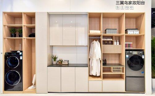走進三翼鳥展廳,沙發、桌椅、櫥柜一應俱全,空調、電視等家電融入其中,還有烤鴨、智能枕、健身車等眾多第三方產品共同演繹出更多生活場景。以新廚房為例,用戶能體驗的不再是單純智慧的冰箱、烤箱等硬件,而是量身定制的飲食規劃、健康的溯源食材,還有專為母嬰、精英等人群打造的21套不同風格的智慧廚房場景解決方案;在新陽臺,用戶能享受到的不僅是一臺洗衣機、一部干衣機,而是衣物即洗即干、晾衣架自動下落,能健身、能種花、能養寵物的7大類18種智慧陽臺場景方案。