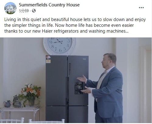 當?shù)貢r間9月29日,墨爾本莫寧頓半島Summerfields莊園主人Brendan在社交平臺分享了一段視頻,融入科德角建筑、融入主人一家生活的是海爾冰箱和海爾洗衣機。