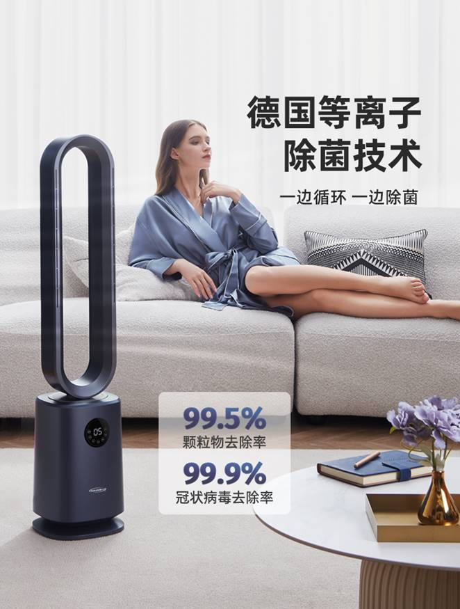 科學實驗證明,SoleusAir舒樂氏無葉風扇捕捉空氣中的甲醛、細菌、病毒、粉塵、花粉等有害物質,釋放低溫正負離子在空氣之中主動捕捉病毒等物質并進行消殺,可達到99.99%高效除菌,從源頭把控潔凈健康的空氣。