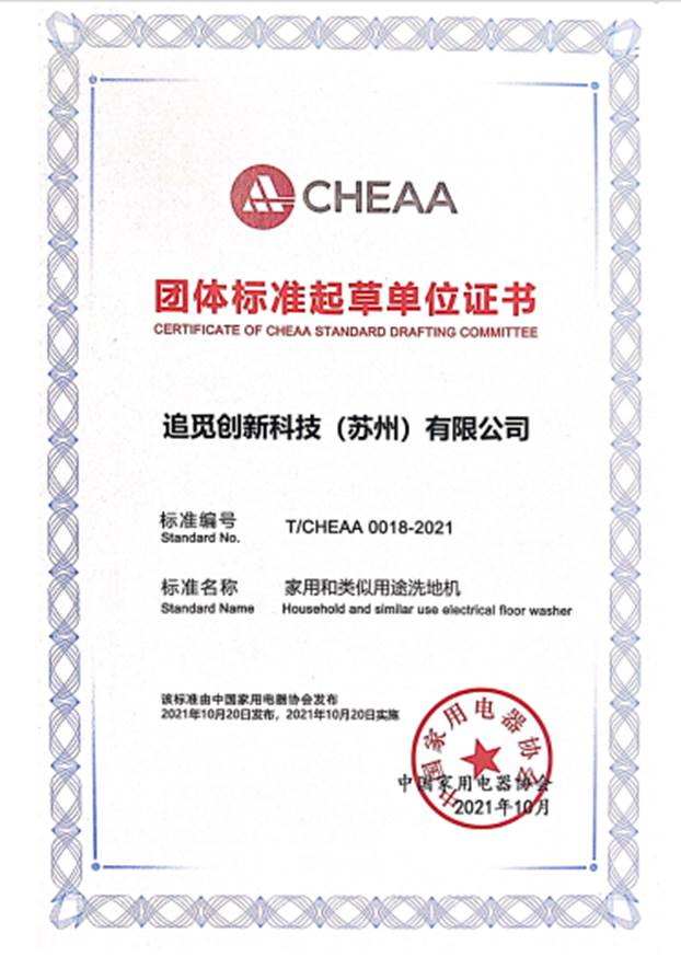 【劃重點】:近日,中國洗地機行業(yè)首個標準——中國家用電器協(xié)會團體標準T/CHEAA 0018—2021《家用和類似用途洗地機》在北京正式發(fā)布。在中國家用電器協(xié)會的號召帶領下,追覓科技作為智能清潔行業(yè)內領軍企業(yè),與添可、美的等品牌共同參與本次標準起草制定。