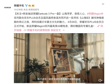 榮耀Magic4系列的影像技術與中華文化完美結合,讓更多消費者感知到華夏文化的奇妙魅力。據悉,4月29日榮耀京東PLUS會員日,新品榮耀Magic4系列最高享24期免息,限時還可贈國風專屬禮盒,歡迎廣大消費者選購。