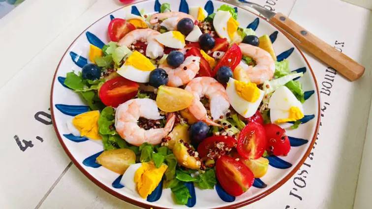 蛋白類:雞胸肉、鮮蝦、煮蛋等都是很容易獲取的蛋白,要豐富口感的話也可以選擇煎三文魚、煎銀鱈魚、煎牛排等,或者一丟丟帕瑪森干酪等。減脂正常補充蛋白即可,如果需要增肌,健身后尤其力量訓練后更要補充優質蛋白,避免肌肉流失。