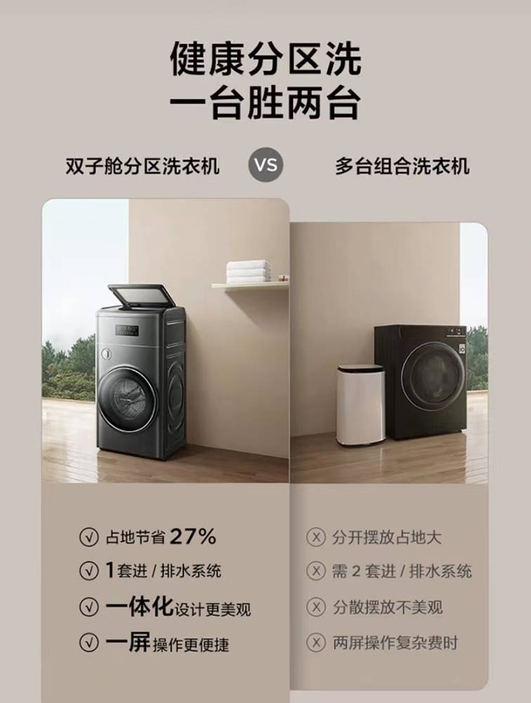 想要輕松地解決洗衣問題,建議挑一挑好洗衣機,最好是能夠做到上述多方面清洗功效的,這樣省時省力,洗衣服也更安心。對比現(xiàn)有市面上具有上述功能的洗衣機,要論“質(zhì)價比”非TCL莫屬,TCL的T300洗衣機,包含10kg+2kg的分區(qū)雙子艙,日常清洗就可以將內(nèi)衣放進2kg的艙里,這樣外衣上的細菌便不會混洗到內(nèi)衣物上,可以在一定程度上避免混洗滋生細菌。