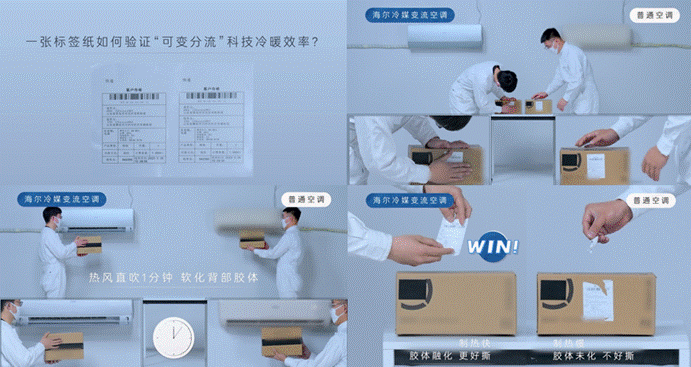 贏在科技:海爾空調原創“可變分流”科技,制熱、更快更強勁,從而使標簽紙輕松、完整被撕下。