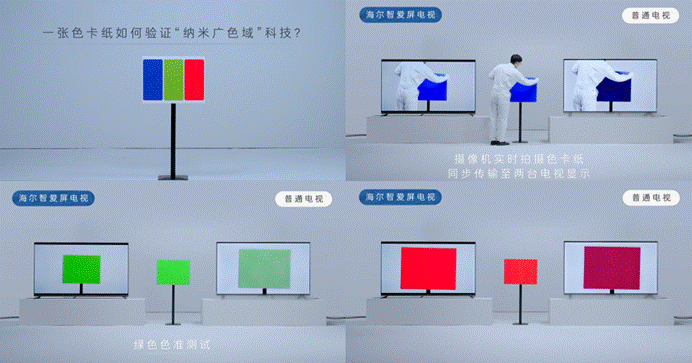 贏在科技:海爾電視原創“納米廣色域”科技,通過高精度色彩還原與校準,讓電視中色卡紙的顏色更加逼真。